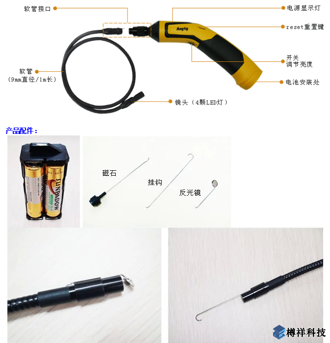 反光鏡:在內窺鏡看不到的地方(如側面),可用專用反光鏡顯示物體周邊情況。