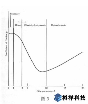 眾所周知,潤滑是降低摩擦減少磨損的有效方法。根據潤滑油膜的形成原理與摩擦副表面被隔開的程度,潤滑狀態可分為邊界潤滑,混合潤滑和流體動力潤滑。Streibeck 以滑動軸承的大量實驗數據為基礎繪制了著名的Streibeck 曲線(圖1)。