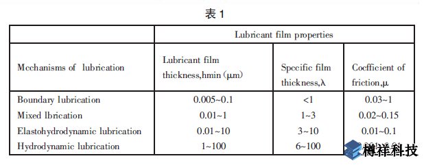 如果將圖4 數值化則可成表1,見圖5。表1 中給出了各種潤滑狀態下典型的油膜厚度hmin,比膜厚λ 和摩擦因數μ。1.邊界潤滑從使用壽命、可靠性、節約能源,降低材料消化等方面來看。