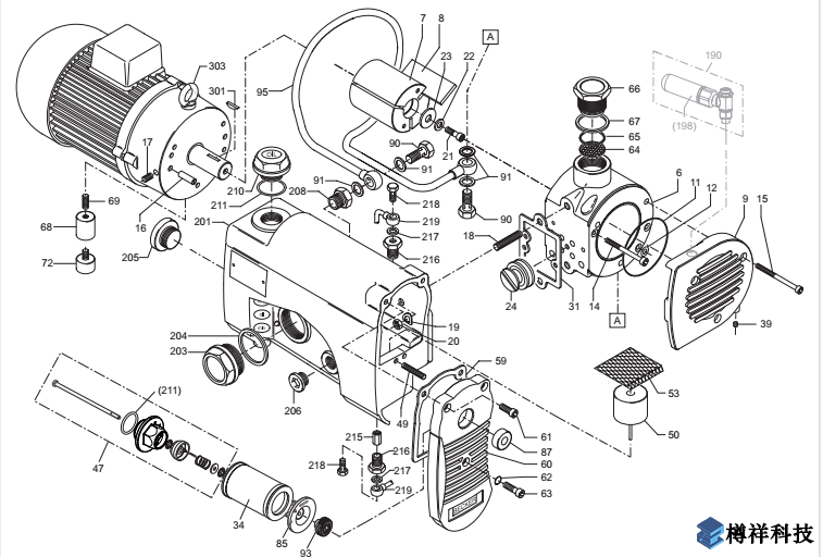 筆者現場遇到一油式旋片真空泵出現啟動后跳電現象。在排除電機故障后,打開電機散熱風扇罩對泵進行手動盤車無法盤動。憑借經驗判斷故障來自于泵腔體和轉子內部。該泵工作環境中含有粘稠狀物質,很有可能轉子被粘稠物質粘住導致電機負荷增大,不能帶動泵工作便啟動過載保護。