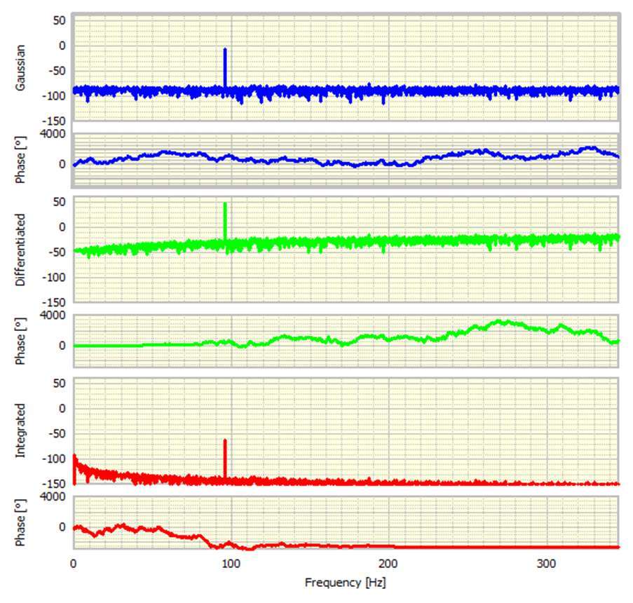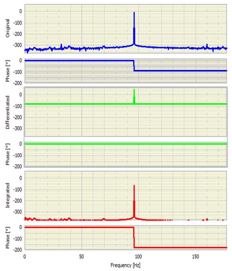 ***先看相位,原始正弦波的相移為-90 0。這完全符合預期,因為FFT的基礎實際上是余弦。差分信號的相位變化為零,因為它現在是純余弦。積分信號具有180度相位變化,表示它是負余弦。