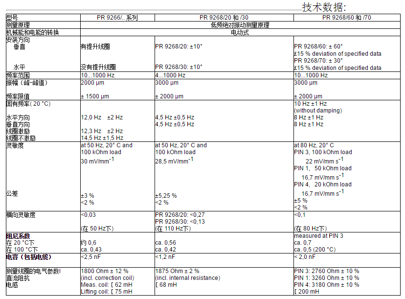 絕對振動傳感器檢測設備 PR 9266/.. 和 PR 9268/.. 系列用于測量頻率范圍 10…1000Hz 和 4...1000Hz的絕對機械振動. 測量***大振幅可達 2mm有的可達 3mm (峰-峰值). 可提供與振動速度成正比的電壓信號