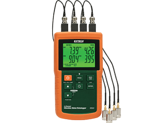 VB500數據記錄并以Excel格式存儲在SD卡上的讀數。大型背光液晶顯示屏同時顯示四個通道。5,10,30,60,120,300,600秒的可選數據采樣率。遠程振動傳感器,帶有39“(1m)電纜的適配器,寬頻率范圍為10Hz至1kHz,基本精度為±(5%+ 2位),具有RMS或峰值測量模式,數據保持和自動關機功能。配備4個遙控傳感器,磁性安裝座,8 x AA電池,100-240V通用交流適配器,SD卡和耐用硬質手提箱。