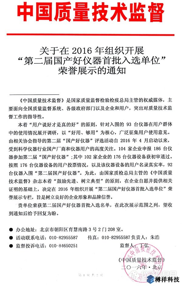 近日,項目組經用戶舉報發現,有媒體或組織(如《中***質量技術監督》、中******科技產業化研究會、品牌戰略專***工作委員會)等以“第二屆***產好儀器入選單位全***榮譽展示”、“中***科技創新質量創優行業十佳知名品牌榮譽證書”為名向入選企業發送通知郵件,借此營利,收取宣傳、廣告費用,給眾多儀器廠商造成引誘和誤導。