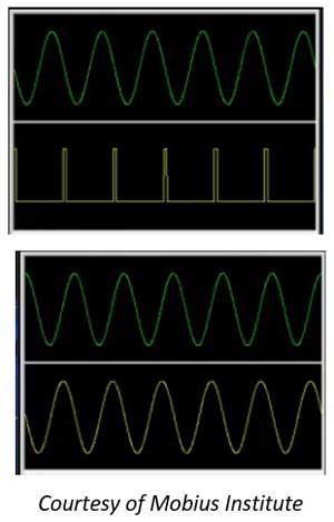 因此,有兩個信號被比較:振動信號和由反射帶通過觸發的轉速計脈沖,或來自關鍵相位器的脈沖。轉速計脈沖產生方波,而振動信號發出正弦波。