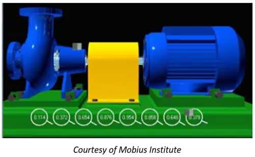 軸向相位讀數提供了哪些有用的信息?讓我們考慮一下可能性。將傳感器A沿軸向放置在電機內側軸承上,將傳感器B放置在軸向外側泵外側位置,并比較相位讀數。如果它們是同相的,這是預期的。然而,如果它們相位相差180度,則指向角度不對準狀態,其中軸在旋轉時彼此推壓。正如在正常振動讀數中一樣,軸向相位測量可用于確認未對準條件。