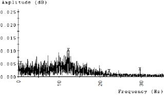 圖3中所示的邊帶頻率現在在圖4中以6.5Hz顯示,并且在解調頻譜中具有2x和3x帶通頻率。仔細觀察當前頻譜,存在2x和3x頻率,但不容易識別。這種光譜中的帶通峰值是帶對準,磨損和滑輪問題的良好早期指標。