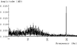如果出現問題,也會在頻譜中找到驅動和驅動速度。與振動一樣,1倍轉速意味著對機器的不平衡影響。在圖4中,風扇速度顯示剛好超過25 Hz。在圖5中,運行速度為1,800RPM泵電機可以在低于30 Hz的頻率下識別。在這兩種情況下,趨勢這些峰值的幅度可以告訴我們很多關于機器狀況的事情。通常,該峰值將處于或接近頻譜的本底噪聲。振幅將在直接驅動泵組件上爬升的兩個***常見原因是由于未對準或耦合損壞。